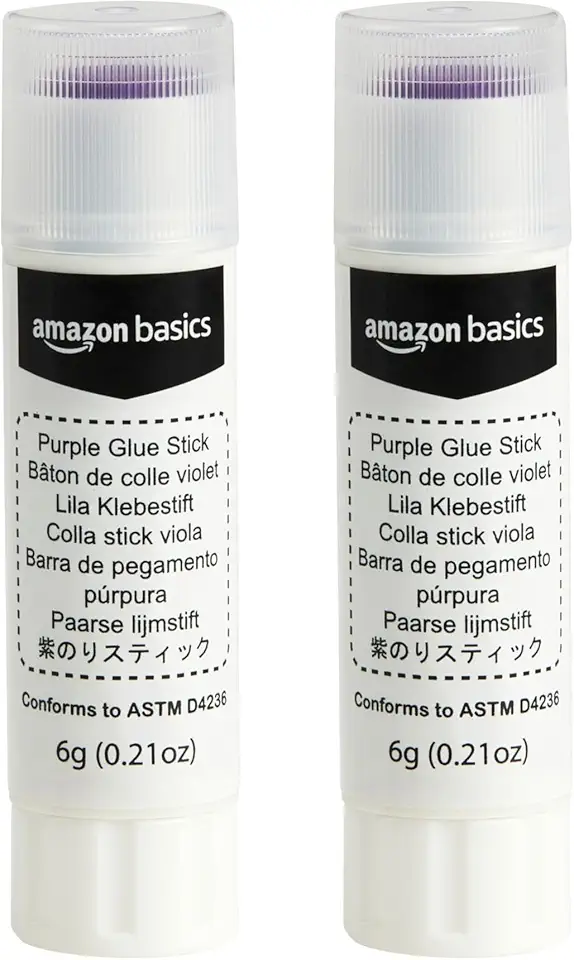 Amazon Basics – Washable School Glue Sticks, Dries Clear, 2-Pack, Purple